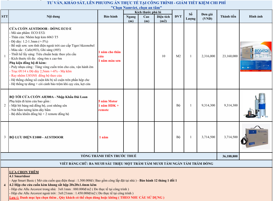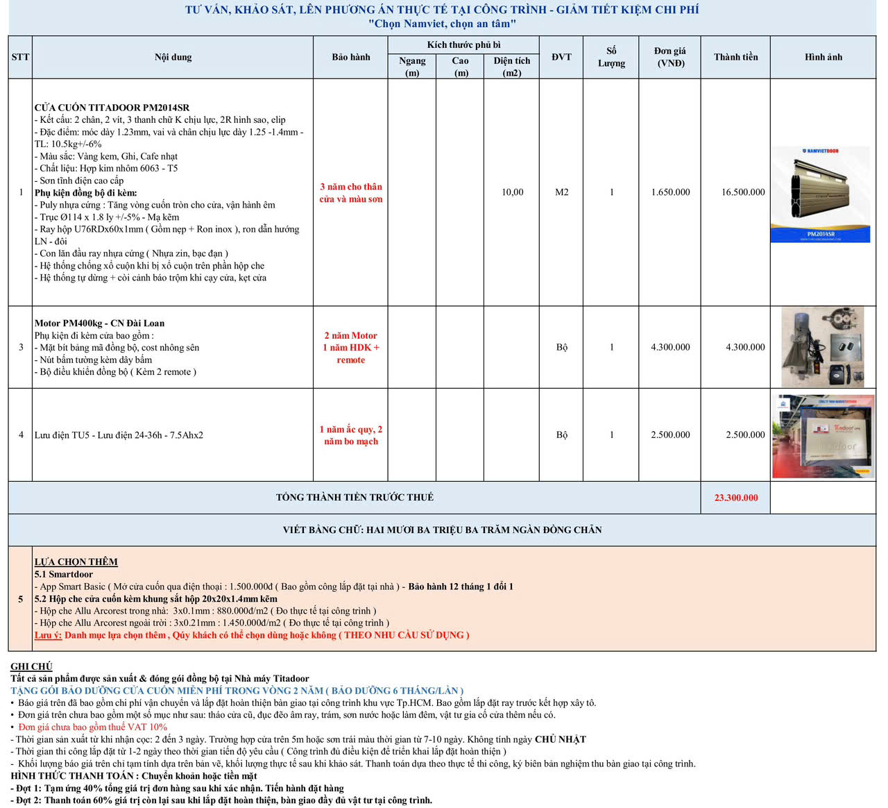 – Giá cửa cuốn tính trên đã bao gồm chi phí vận chuyển và lắp đặt hoàn thiện trong nội thành HCM.
