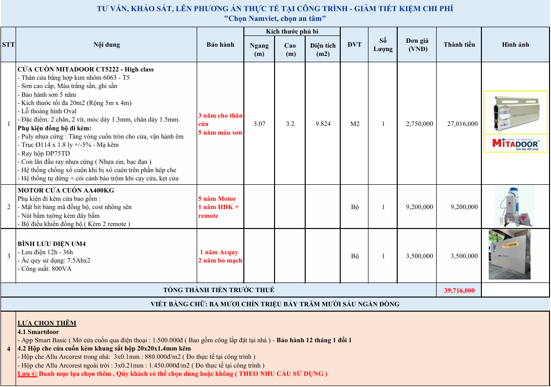 Cửa Cuốn Đức Mitadoor : Giá trung bình từ 1.550.000đ – 1.950.000đ/m2 + Phụ kiện