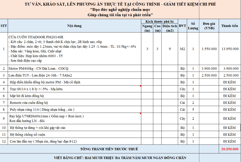 BÁO GIÁ THI CÔNG CỬA CUỐN TITADOOR TRỌN BỘ ( GIÁ LẮP ĐẶT + PHỤ KIỆN + THÂN CỬA )