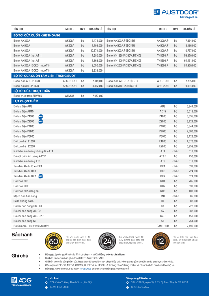 Tham khảo bảng giá Cửa Cuốn Austdoor mới nhất T10/2025